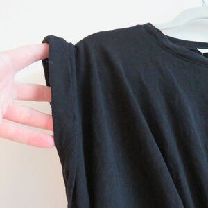 FRAME Knotted Roll-Sleeve T-Shirt in Black Cotton Minimalist Quiet Luxury - XS