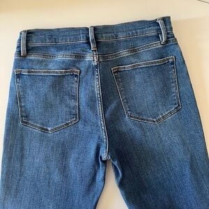 Le High Flare's high-rise silhouette puts a fresh spin on retro style. Form-fitting through the hips and thighs, with an easy flare that flatters all body types. This pair is crafted from super stretch denim in a clean, bright indigo wash.