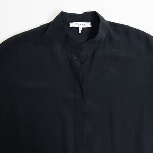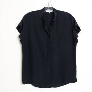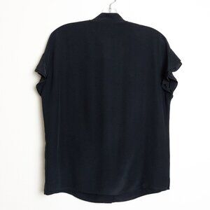 FRAME Silk Blouse Black Flounce Short Sleeve Top Button Up XS