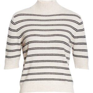 Slim stripes wind around this mock-neck sweater knit from supersoft, cashmere-kissed wool.