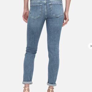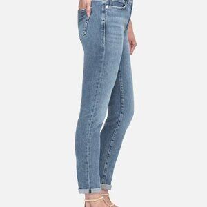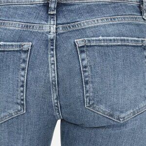 A FRAME classic, this mid-rise boyfriend fit is a relaxed take on the classic skinny jean. Features include a rolled hem and a medium indigo wash with contrast thread color. Crafted from super-stretch cotton blend for the softest, most comfortable wear.