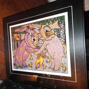 ONE OF A KIND ART BY EMMANUEL EMVIC OF NIGERIA A NEW AGE ARTIST WHOSE ART HAS CAUGHT THE ATTENTION OF MANY PEOPLE COAST TO COAST HIS DISCOUNT SHOWS THROUGH EVERY DIFFERENT FORM OF PAINTING HE DOES THIS ONE HERE NAMED " WATERLANDS ELEPHANTS"" IS A GREAT PIECE FOR ANY DECOR