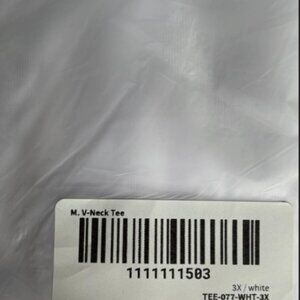 TLDR: Mid-depth V, relaxed body, regular-length short sleeves.Brand new FRANC white V-neck tee, still in original packaging. This versatile and comfortable tee is perfect for everyday wear. It features a classic V-neck design and is made from high-quality, breathable fabric.