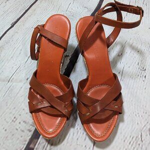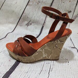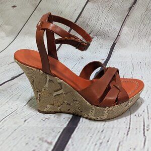 FRANCO BARBIERI Leather Ankle Strap Wedge Sandals Snakeskin 8