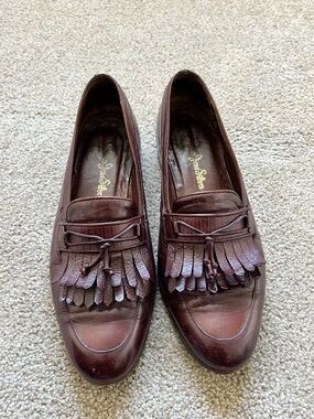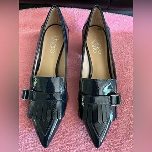 FRANCO SARTO Brown Leather Pointed Toe Loafers Gold Heel Detail 7.5