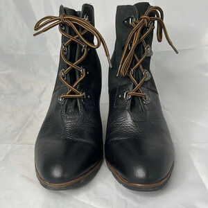 FRANCO SARTO Derby Black Wedge Lace Up Boots Pebble Grain Nubuck Leather Edgy 12