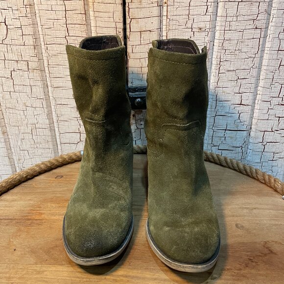 FRANCO SARTO OLIVE GREEN DISTRESSED SUEDE HIGH HEEL ANKLE BOOTS 7