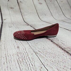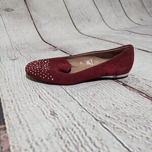 FRANCO SARTO Red Suede Rhinestone Embellished Loafer Shoe 7.5 NEW