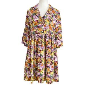 FRANK AND OAK THE BABYDOLL COLORFUL FLORAL HALF SLEEVE DRESS IN MULBERRY - XS