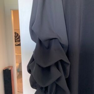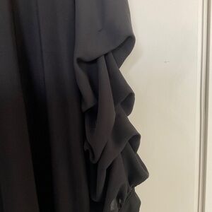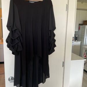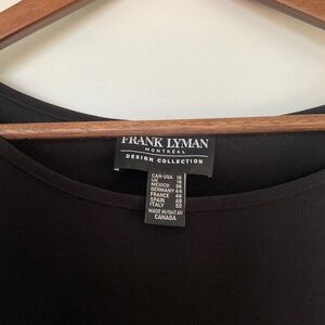 Frank Lyman black hi lo top. Beautiful puffy sleeves. 16. P to p 22”. From the front Front length 23”. Back length 41”. Great condition . Worn once Jersey front and back. Sleeves and back pleated section polyester 5% elastane