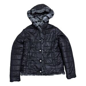 FRANK LYMAN Reversible FAUX FUR Hooded Soft Puffer Coat Jacket Womens Medium