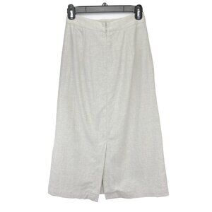 FRANK & OAK Cotton Linen Midi Office Minimalist Academia Pale Gray Skirt s XS