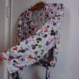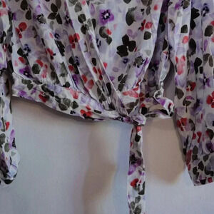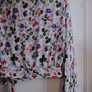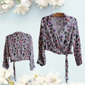 FRANK & OAK FLORAL COLLARD LONG SLEEVE FLORAL CROPPED TOP Sz. Small