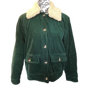 FRANK & OAK Fur-trim Green Corduroy Jacket