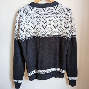 FRANK & OAK Grey & Cream Fair Isles Wool Chunky Knit Cardigan Size Medium