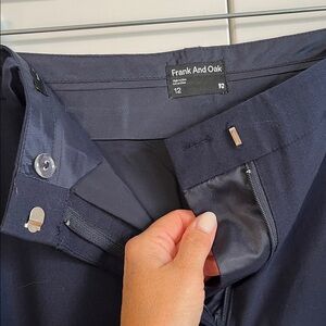 FRANK & OAK NWOT Classic Navy Blue High Rise Lined Trouser Pants, Size 12