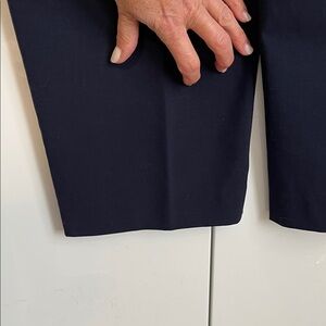 Elevate your wardrobe with these classic trouser pant that are fully lined. In navy blue. Perfect for any occasion, offering both style and comfort. Perfect for a day at the office with a classic button down shirt or with sneakers and an oversized sweater. They have a hook and eye closure with zipper and 2 front slant pockets 2 back gf aux pockets. The style is a straight leg. These are new without tag never worn.
