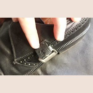 Shows signs of wear as visible on pictures. Has superficial scratches, pleats and use on soles and heels.