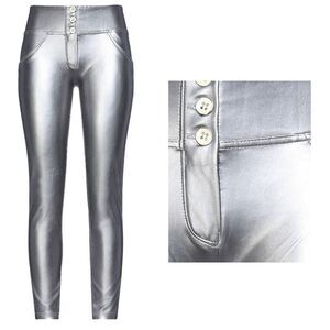 FREDDY WR.UP metallic silver faux leather pleather skinny leggings M NWT Rare