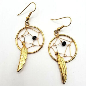 🆓️ FREE ADD ON TO BUNDLE Dream Catcher Gold Tone Dangle Feather Earrings