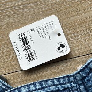 🆕 FREE PEOPLE 2-Piece Maddox Denim Skirt + Top Set in Blue Shadow