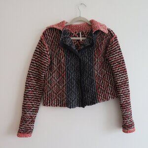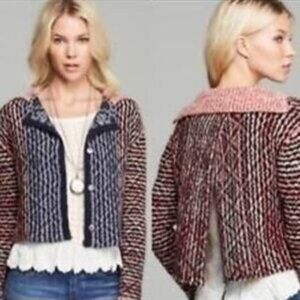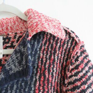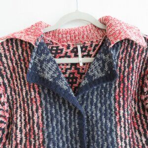 FREE PEOPLE Aztec Knit Wool Blend Open Back Cardigan Blue Red - Size XS