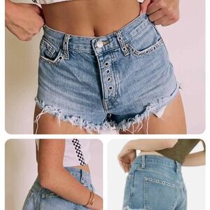 FREE PEOPLE BARCELONA GROMMET JEAN CUT OFF DENIM SHORTS WOMENS SIZE 27