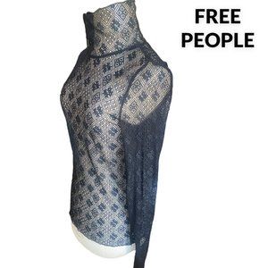 FREE PEOPLE BLACK LACE MESH TOP (SZ L) (EUC)