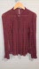 Ruffle pleated collar feature button closure sleeve cuffs rounded hem.