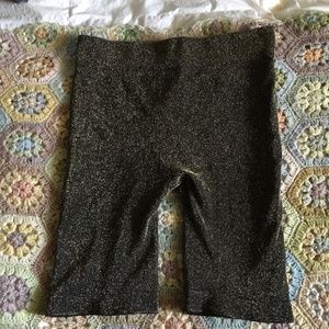 FREE PEOPLE Black + Gold Shimmer Lurex Stretch High Rise Bike Shorts XS/S