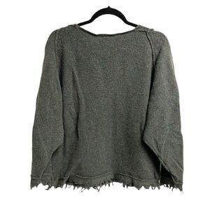 FREE PEOPLE Boho Irresistible Oversized Wool V-Neck Sweater Fringe Green XS