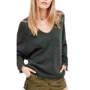 FREE PEOPLE Boho Irresistible Oversized Wool V-Neck Sweater Green XS