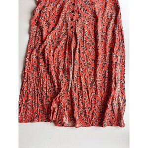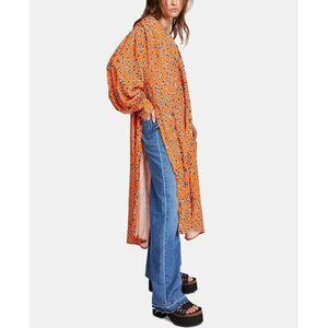 FREE PEOPLE C'est Moi Orange Leopard Printed Long Duster Maxi Blouse Top, Size M