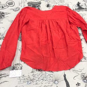 A wrap style front and long sleeves complement this casual top.