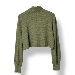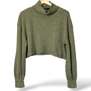 FREE PEOPLE Cotton Blend Long Sleeve Waffle Textured Cropped Top Mock Neck Sz M