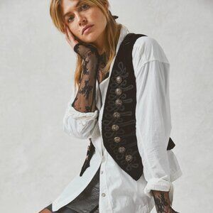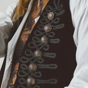 Add the perfect vintage-inspired touch to any look with this so cool vest featured in a staple, military-style design with exaggerated buttons and embroidery at front for added dimension.