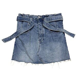 FREE PEOPLE Designer We The Free Denim Jean Mini Skirt With Belt Womens Small