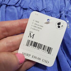 Color: periwinkle purple-blue, with silver logo on hip ("African Lilac")