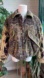Features: Textured cotton fabrication, mixed print design, collared neckline, button closures, drop-shoulder sleeves, exaggerated pockets, contrast stitching, lined and filled for warmth.