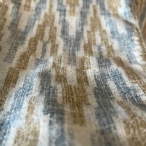 Stylish skinny jeans with a zigzag pattern. Features shades of blue, tan, and cream. This pair of yellow and blue jeans is from Free People. The shape is timeless, but the ikat pattern is modern and fresh. In great condition (no stains, tears, or holes) and only worn a handful of times.