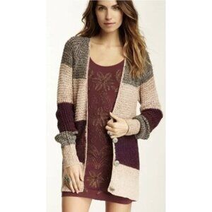 FREE PEOPLE Lake Tahoe Color Block Striped Cardigan Loose Knit Pastel Purple - Size XS