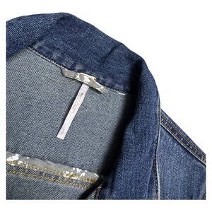 FREE PEOPLE Luxury Designer Blue Denim Jean Jacket Womens Small