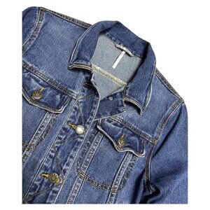 FREE PEOPLE Luxury Designer Blue Denim Jean Jacket