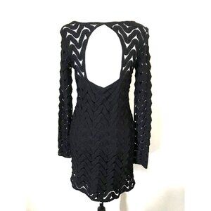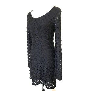 FREE PEOPLE Midi Dress Size Small Black Lined Open Knit Shell Overlay