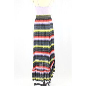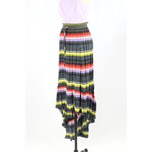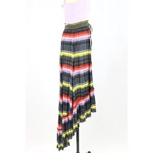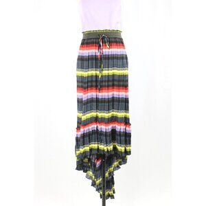 FREE PEOPLE Multi Color Striped Pleated Polyester Satin Hi-Lo Maxi Skirt, Size S