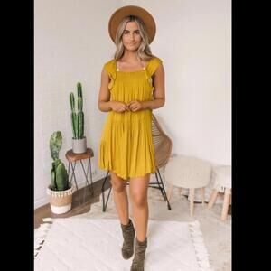 FREE PEOPLE NWT boho want your love tunic dress size XS mustard yellow