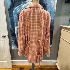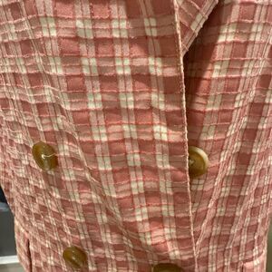 BNWT Elevate your style with this chic plaid double-breasted coat. Perfect for any occasion, this coat features a classic design in a beautiful pink hue. Stay warm and fashionable all season long.