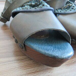 FREE PEOPLE Rendering Perforated Leather Buckle Heel Platform Clogs in Taupe Teal - Women's Size EU 38 / US 7.5