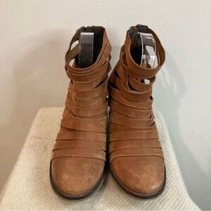 FREE PEOPLE SZ 38 Hybrid Stacked Heel Strappy Back Zipper Ankle Boots Booties. Trendy and cool. Western vibe. Boho or bohemian vibe. About 3” heel.