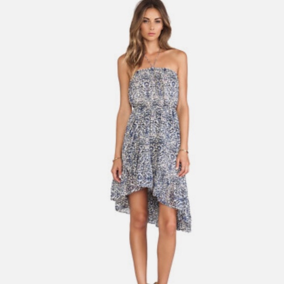 Free People Safari Sunset Halter Neck Dress Ruffle Print asymmetrical blue light